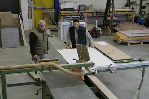 Jean-Luc Viguier entre alors en relation avec la direction du développement économique du GrandSoissons, afin d’être conseillé et d’accéder à un local à loyer modéré dans la pépinière d’entreprises des Etomelles à Villeneuve-Saint-Germain. Un atelier de 255 m2 lui permet d’installer les machines de production qu’il avait déjà commandées et financées en totalité : plaqueuse de champs numérisée, scie à format, perceuse 21 broches, presse haute pour plaquage, etc. Enfin, un prêt bancaire lui permet d’acquérir un véhicule professionnel.